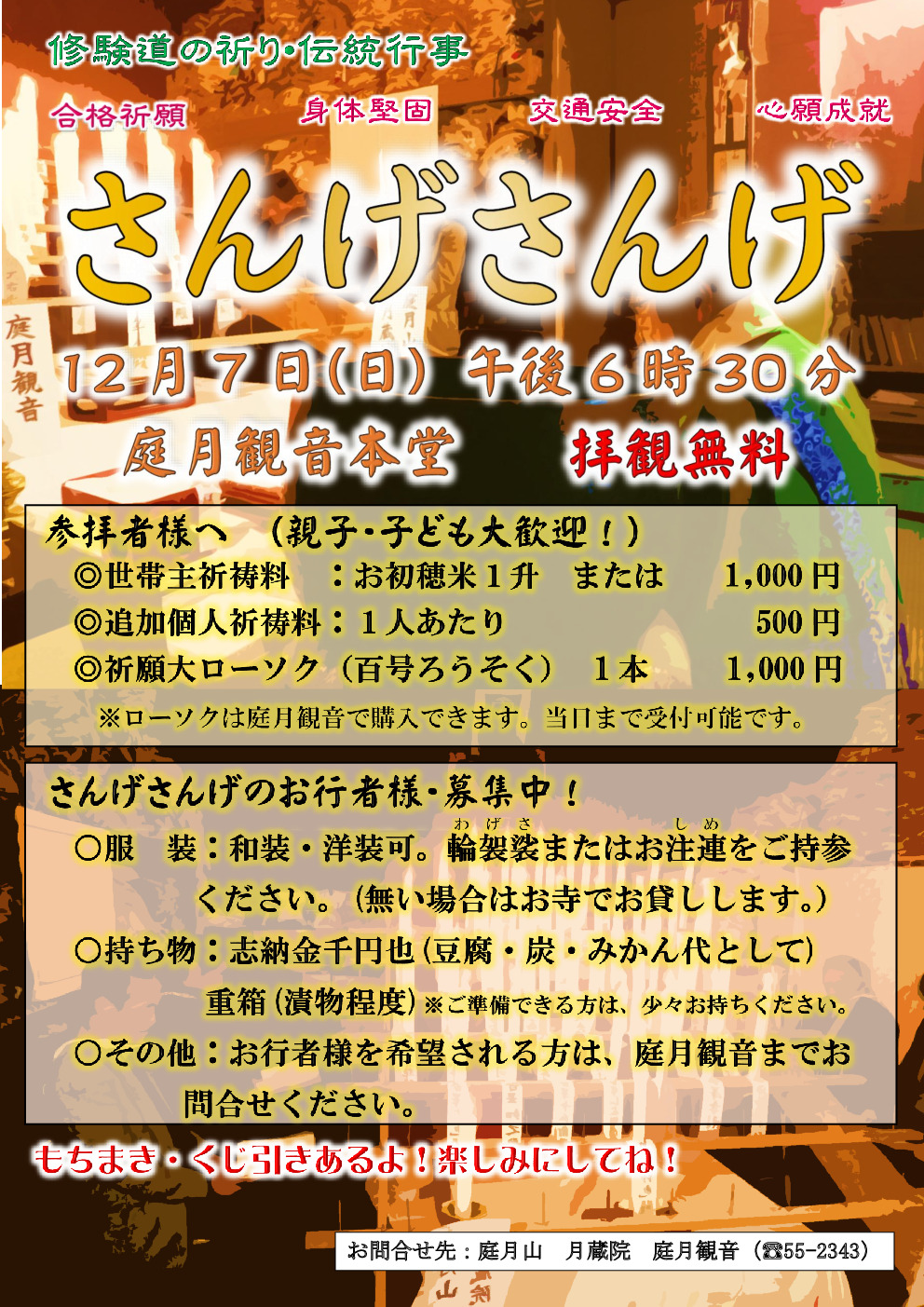 令和7年度庭月観音灯ろう流し万灯供養会を開催します。また、庭月観音ライトアップ~天空灯りの夕べ~も、同時開催します。皆様の御参加・ご参拝を心よりお待ちしております。
